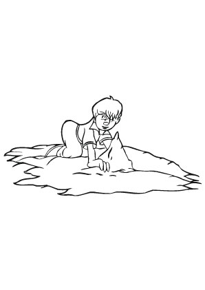 Ausmalbilder Kind spielt am Strand zum Thema Sandburgen und Gebäude zum ausdrucken und ausmalen.