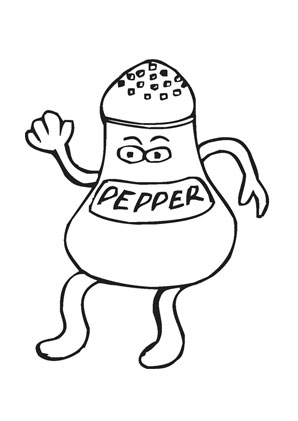 Ausmalbilder Cartoon Pfeffer Streür zum Thema Speisen und Essen zum ausdrucken und ausmalen.