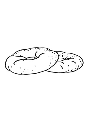 Ausmalbilder Frühstücks Bagles zum Thema Speisen und Essen zum ausdrucken und ausmalen.