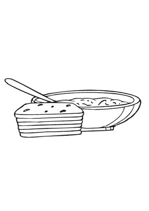 Ausmalbilder Schüssel und Brot zum Thema Speisen und Essen zum ausdrucken und ausmalen.